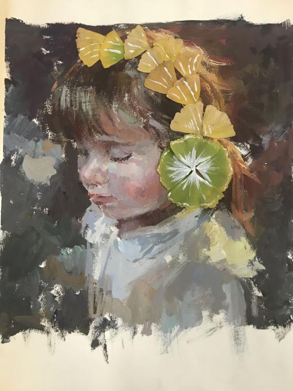 A girl wears a headdress made of leaves